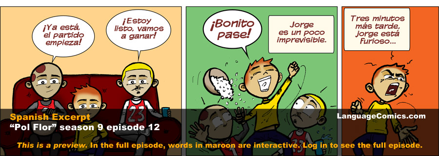 Spanish ~ El fanático | The fan – S9e12 LanguageComics December 14, 2015 0 In this episode: And he wins. Text in maroon is clickable > Membership | >Video teaser ...{{{pf_es_m}}}Full story visible to members only Log in or Become a member