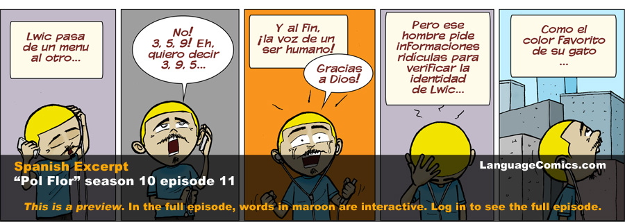 Spanish ~ La contraseña | The password – S10e11 LanguageComics May 31, 2016 0 In this episode: Those phone calls we love. Text in maroon is clickable > Membership | >Video teaser ...{{{pf_es_m}}}Full story visible to members only Log in or Become a member