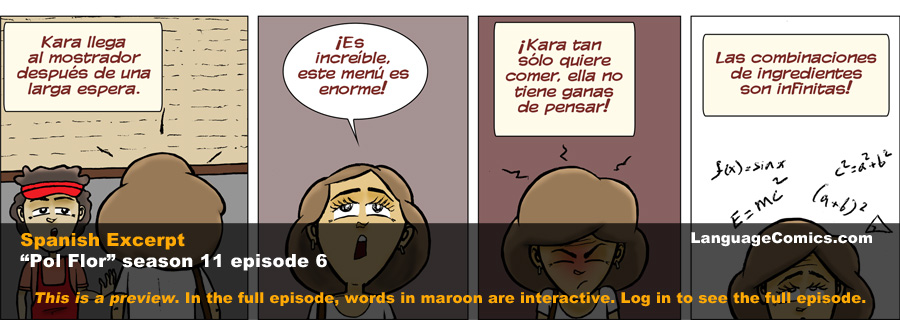 Spanish ~ El bocadillo | The sandwich – S11e6 LanguageComics September 20, 2016 0 In this episode: She just wanted to eat fast. Text in maroon is clickable > Membership | >Video teaser ...{{{pf_es_m}}}Full story visible to members only Log in or Become a member